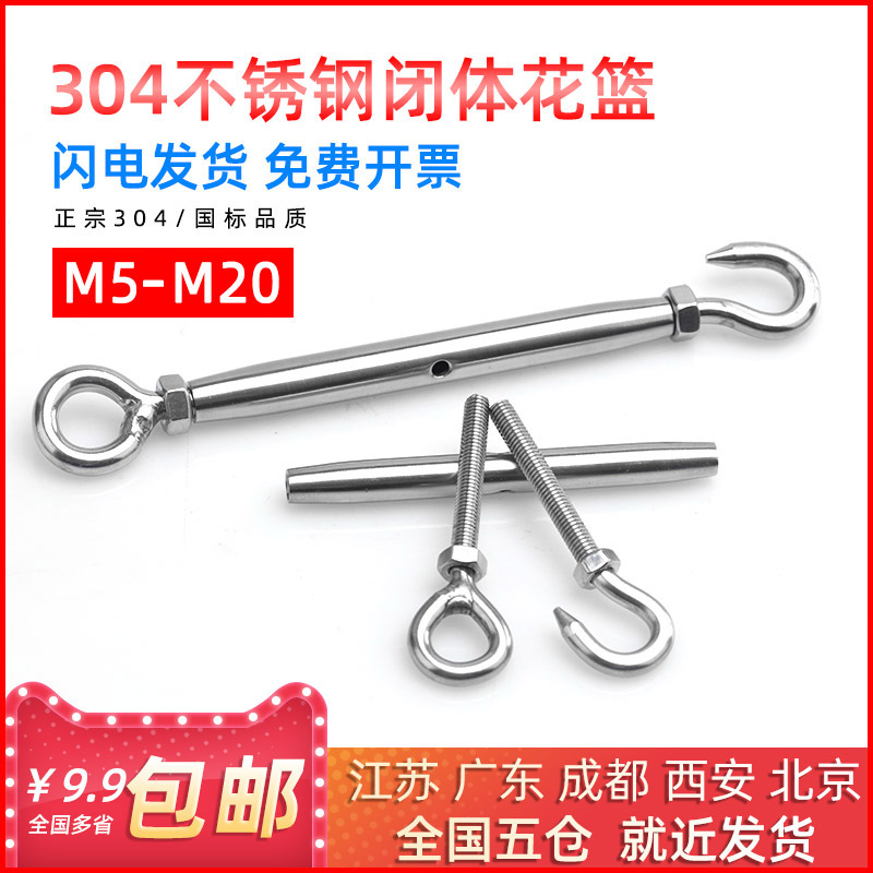 304 stainless steel flower basket screw closed wire rope chain OC type OO type tensioner rope tightener M5-M20