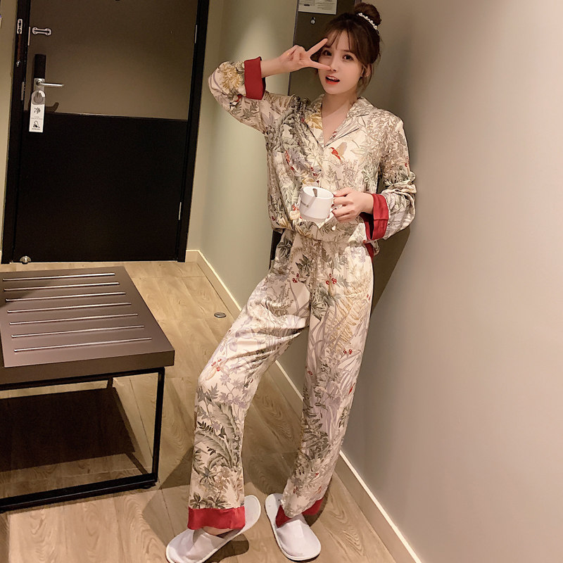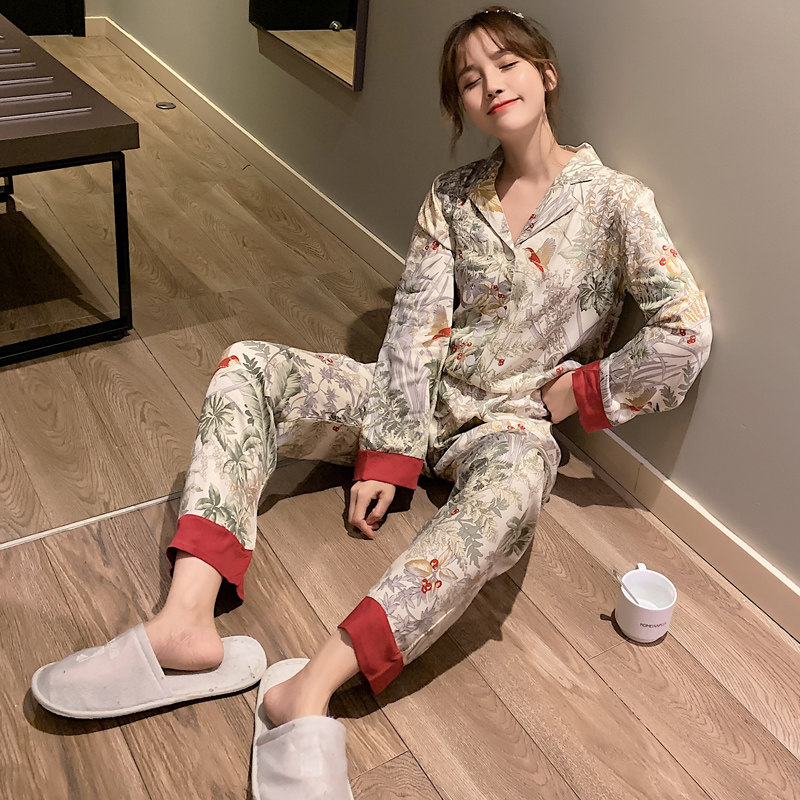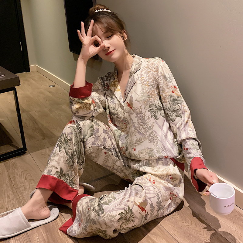 Cotton silk pajamas women's spring and summer two-piece long-sleeved new net red ins loose home clothes cotton Korean version autumn suit