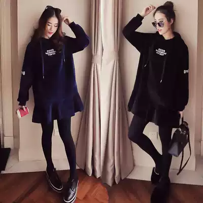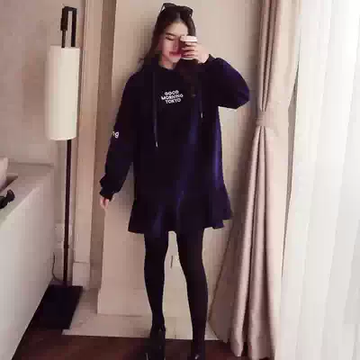 Black thick cotton T black pantyhose (spring and autumn) black thick cotton T black pantyhose (plus velvet model) blue sweatshirt black pantyhose (plus velvet model) Black