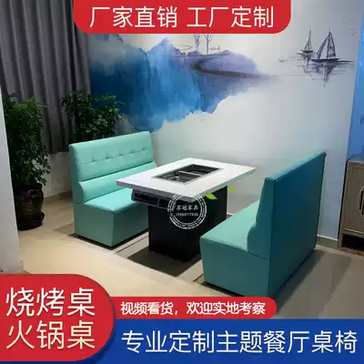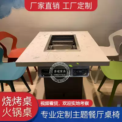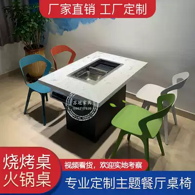 Factory direct sales full marble smart smokeless purifier floor smoke exhaust pipe roasting one hot pot table and chair customization