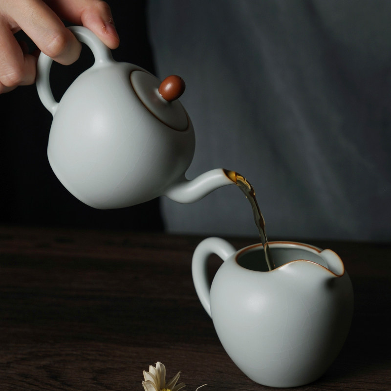 Ru Kiln Teapot Tea Cup Suit Home One Pot two cups imitation ancient Jingdezhen Artisanal Kung Fu Tea Courtesy Kit of Tea Road