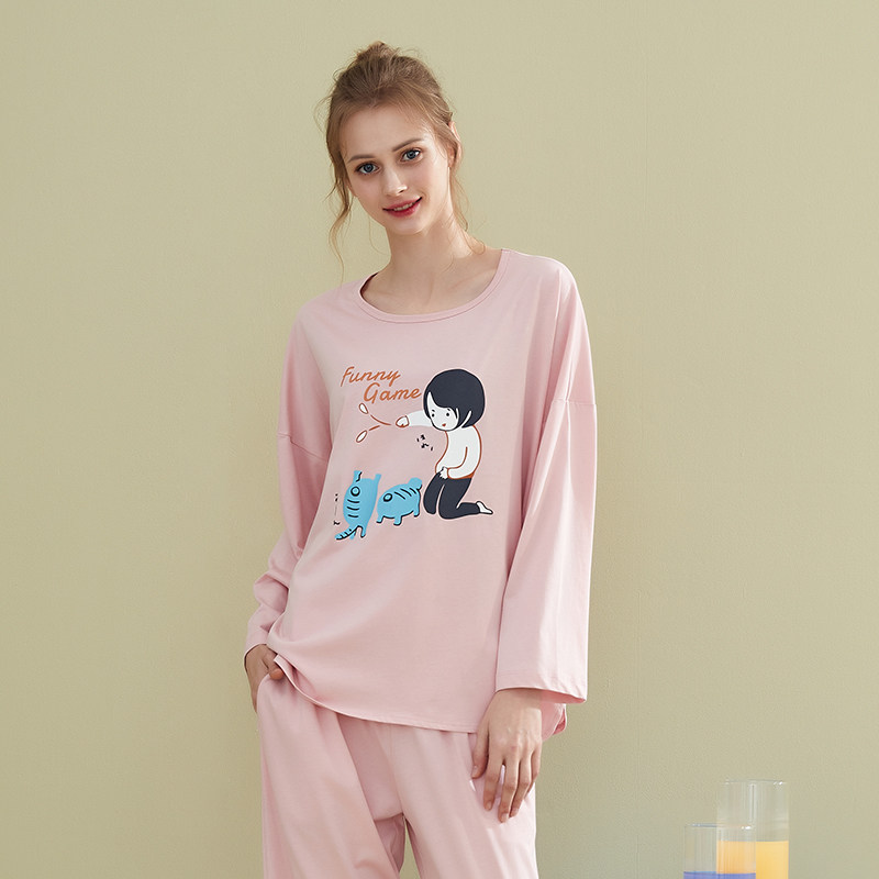 Top melon melon cotton couple pajamas women spring and autumn long sleeves men's loungewear plus size suit can be worn outside cotton home clothes