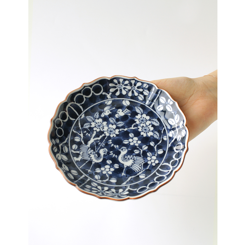 Japan imported Arita-yaki retro blue and white chrysanthemum bird plate dip small plate can be used as a pot tea tow