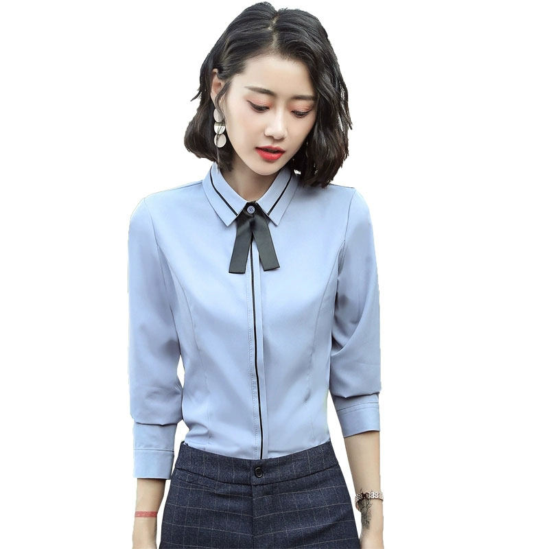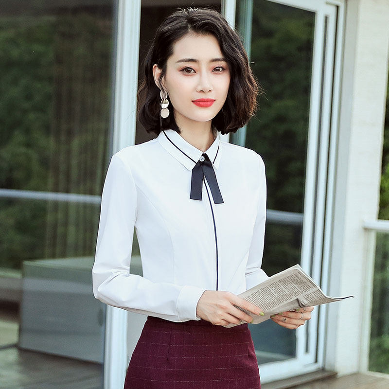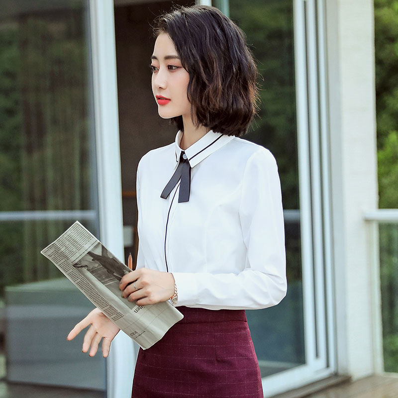Autumn professional white shirt women's long sleeve 2019 new Korean fashion foreign school slim Joker dress shirt