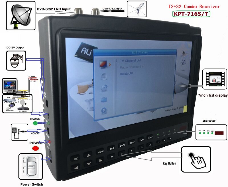 KPT-716ST TS DVB S2 DVB T2 satllite Finder meter Sat
