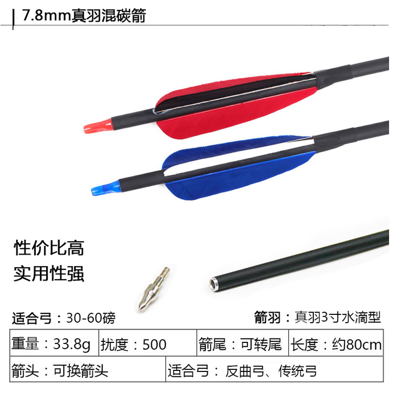 The new bow and arrow branch real feather arrow real feather pure carbon arrow real feather wooden arrow training practice real feather arrow water drop feather arrow feather