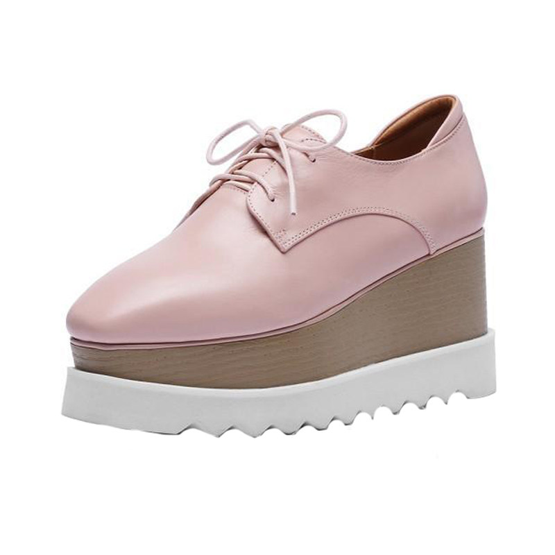 European station square toe platform shoes women's 2022 spring new leather lace-up wedge shoes pink high heels