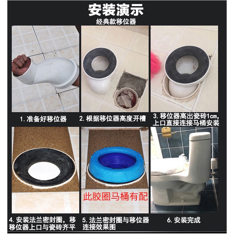 Toilet displacement device is 10 cm of sewerage pipe translator displacement without digging ground flat tube embedded toilet