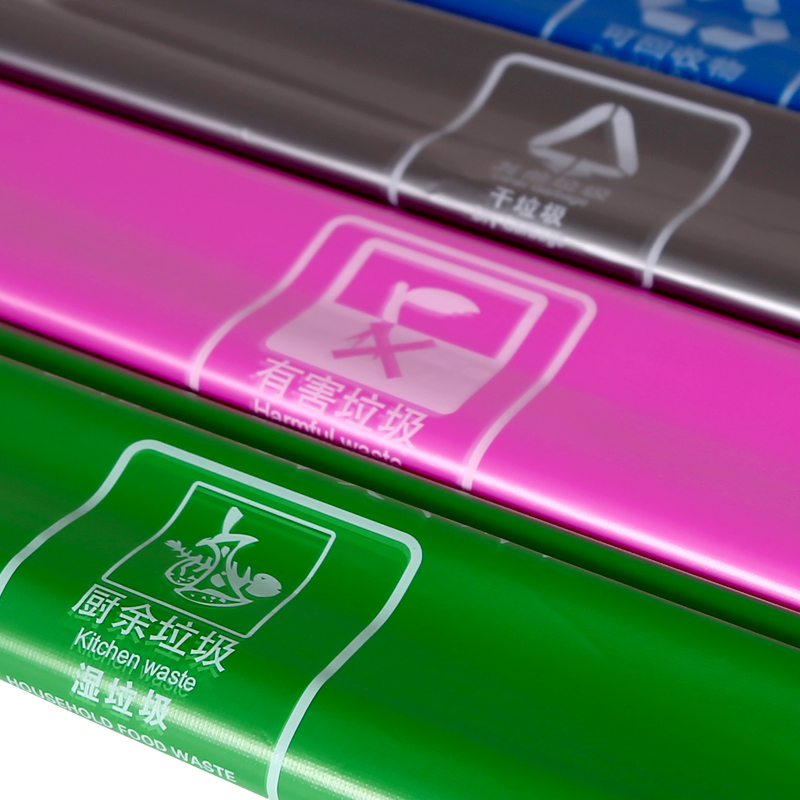 Red harmful garbage bags for a total of 50 grey other garbage bags for a total of 50 45 45 * 50 blue recyclable garbage bags for a total of 50 45 45 * 50 Composition for a total of 200 45 45 * 505 tandem rolls