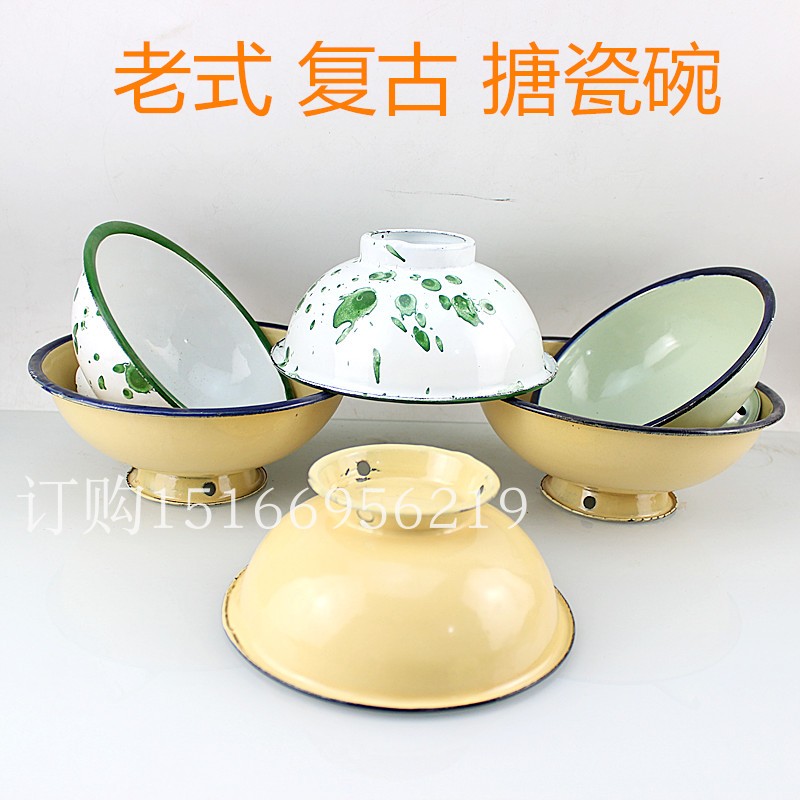 Old-fashioned enamel bowl nostalgic old-fashioned rice bowl noodle bowl ice flower yellow fruit green string spicy hot pot restaurant restaurant
