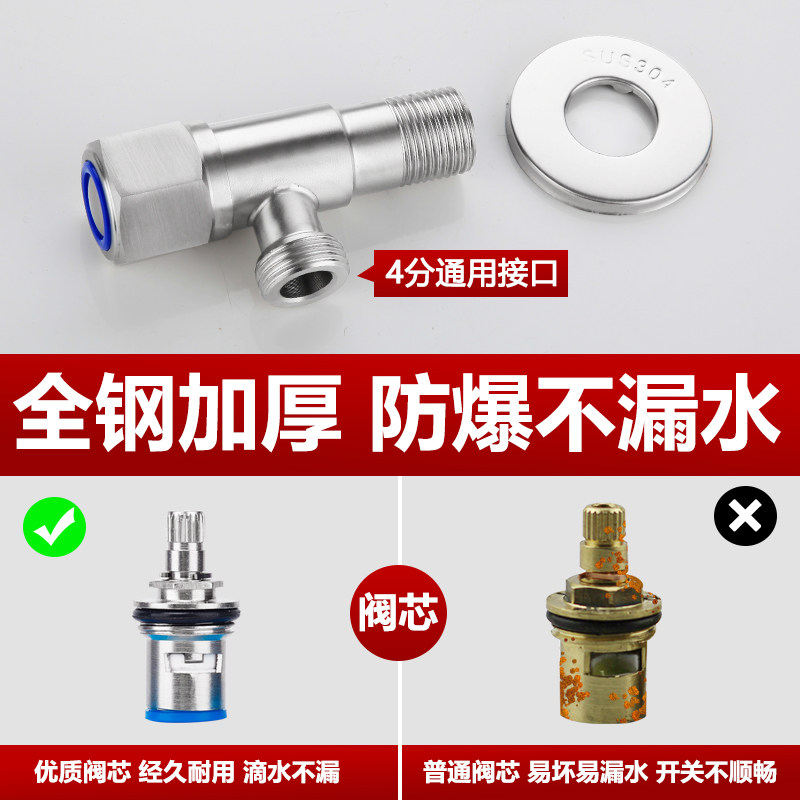 304 stainless steel triangle valve thickens household hot and cold 4 water separation valve switch water heater inlet and outlet water stop valve