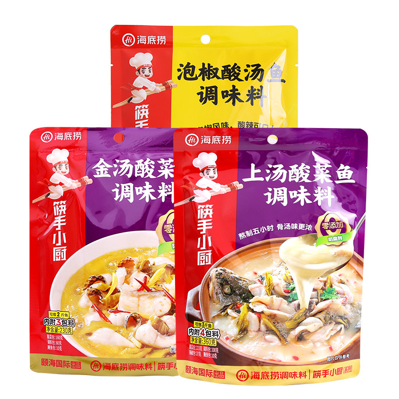 (1 pack) Pickled fish in golden soup 300g (1 pack free millet spicy) (1 pack) Pickled fish in soup 360g (1 pack) Premium boiled fish 210g (1 pack) Laotan pickled fish 2