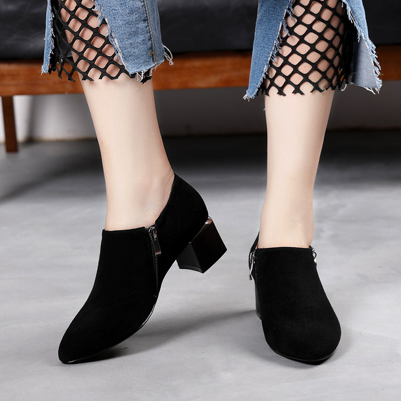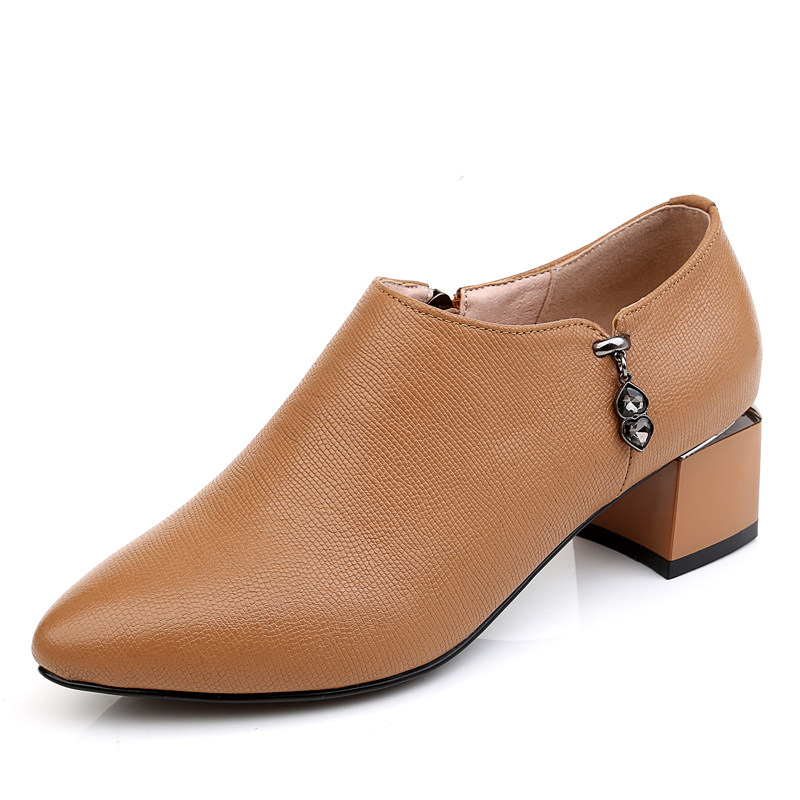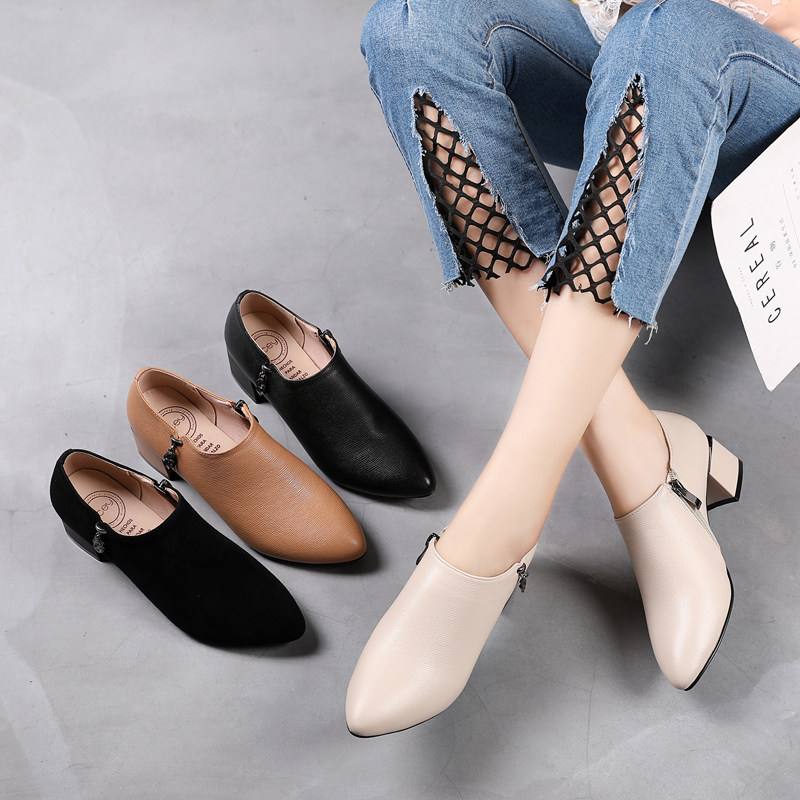 2022 Spring Autumn New Genuine Leather Coarse Heel Single Shoes Woman Heel Pointy Inglém Wind Women Shoes Soft Bottom Frosted Deep Mouth Leather Shoes