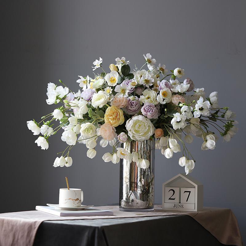 INS wind light luxury wind New Chinese Nordic style glass vase model room Living room flower arrangement flower home soft decoration
