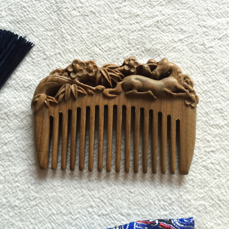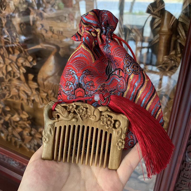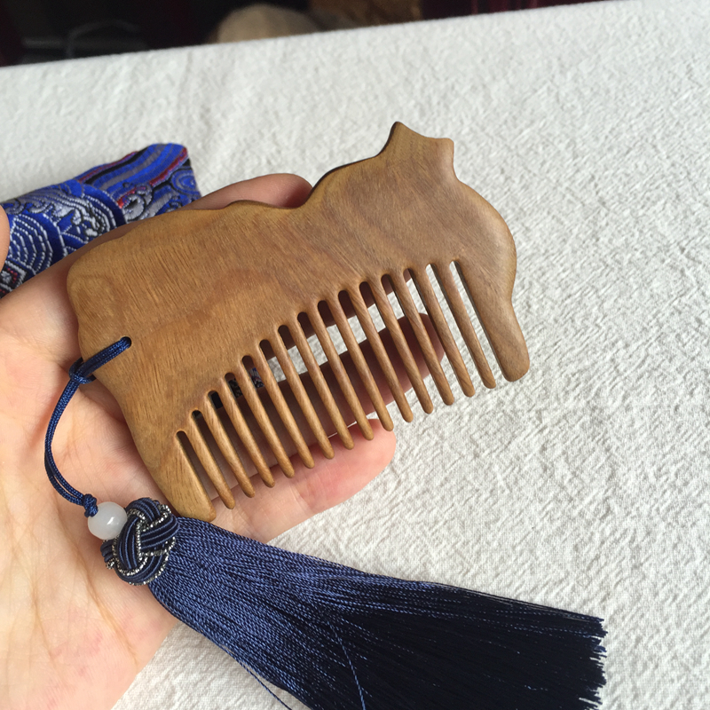 Mini wide tooth nano small bag Recommended with children cute 10cm below green sandalwood Birthday Wooden Comb