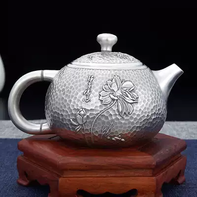 Taian silver industry Buddha zen heart silver pot Sterling silver tea pot handmade foot silver s999 Kung Fu tea set gift