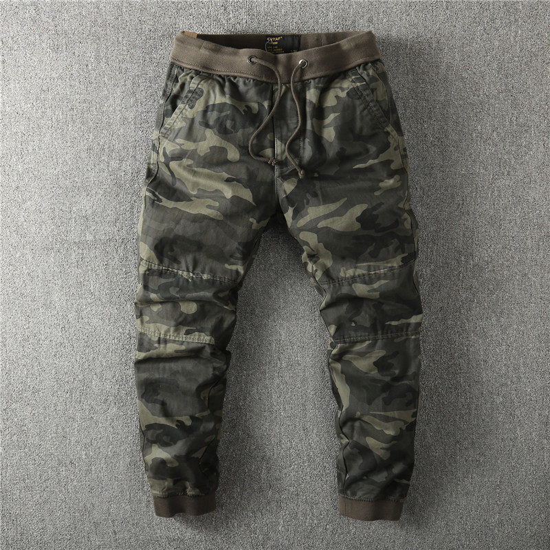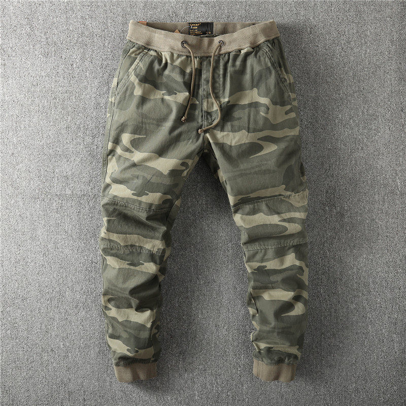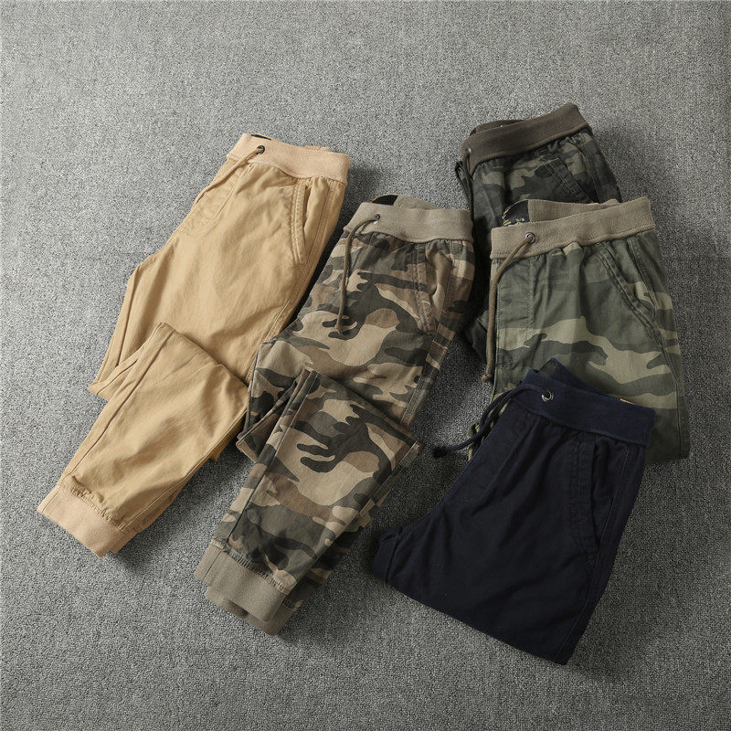 Europe and the United States retro military camouflage trousers jogging pure cotton washing men's drawstring overalls drawstring pants small feet tide