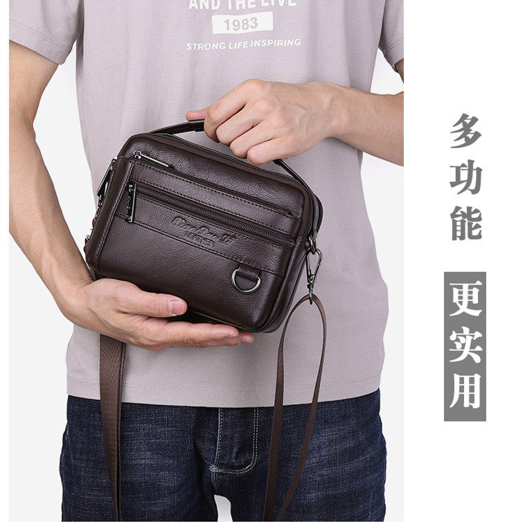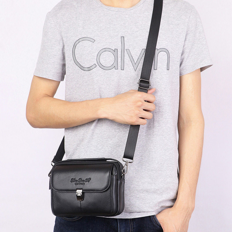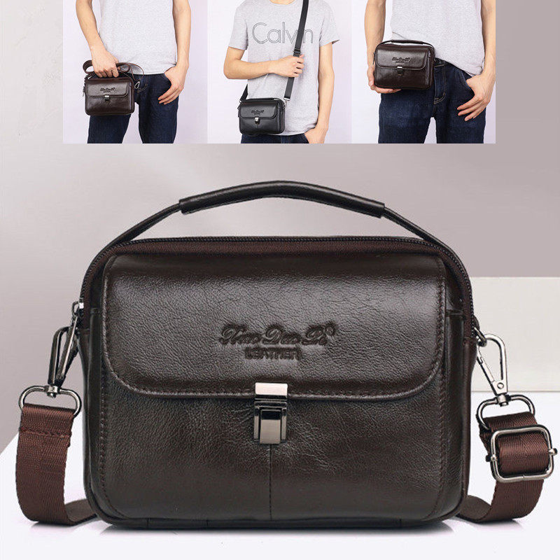 Men's genuine leather 7-inch large screen mobile phone pockets shoulder messenger small bag tide first layer cowhide document coin purse horizontal