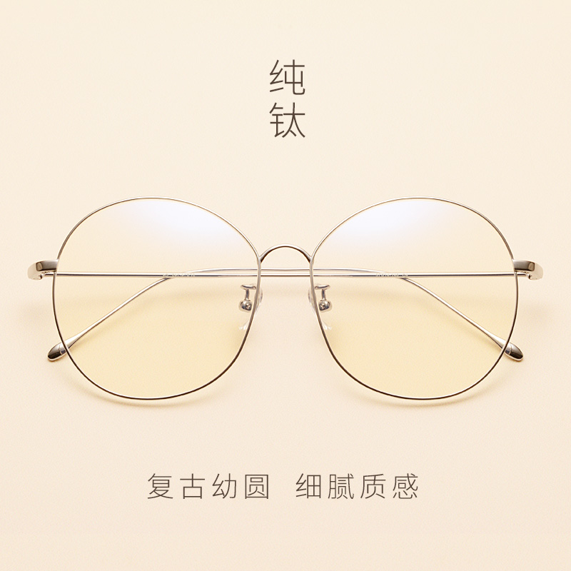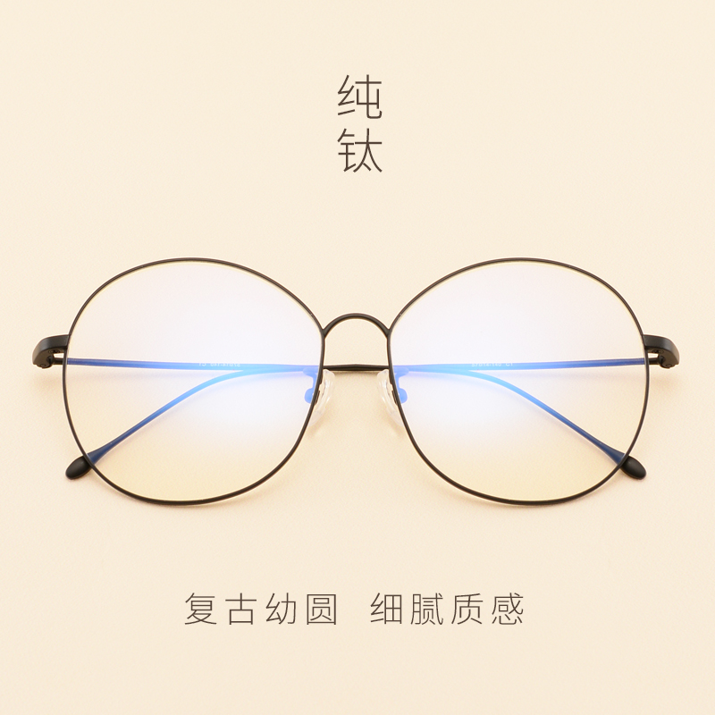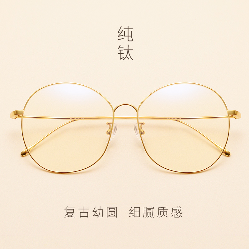 Pure titanium eye frame ultra light and small face can be matched with high myopia glasses female net red light flat mirror round face frame male tide