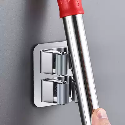 Mop clip hook Strong adhesive punch-free makeup room mop artifact Stainless steel broom pylons fixed wall hanging