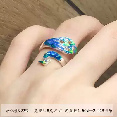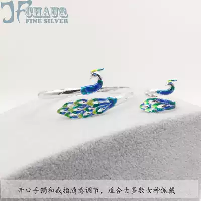 Foot Silver 999 Peacock sterling silver bracelet ring female opening enamel color solid send girlfriend wife gift lettering