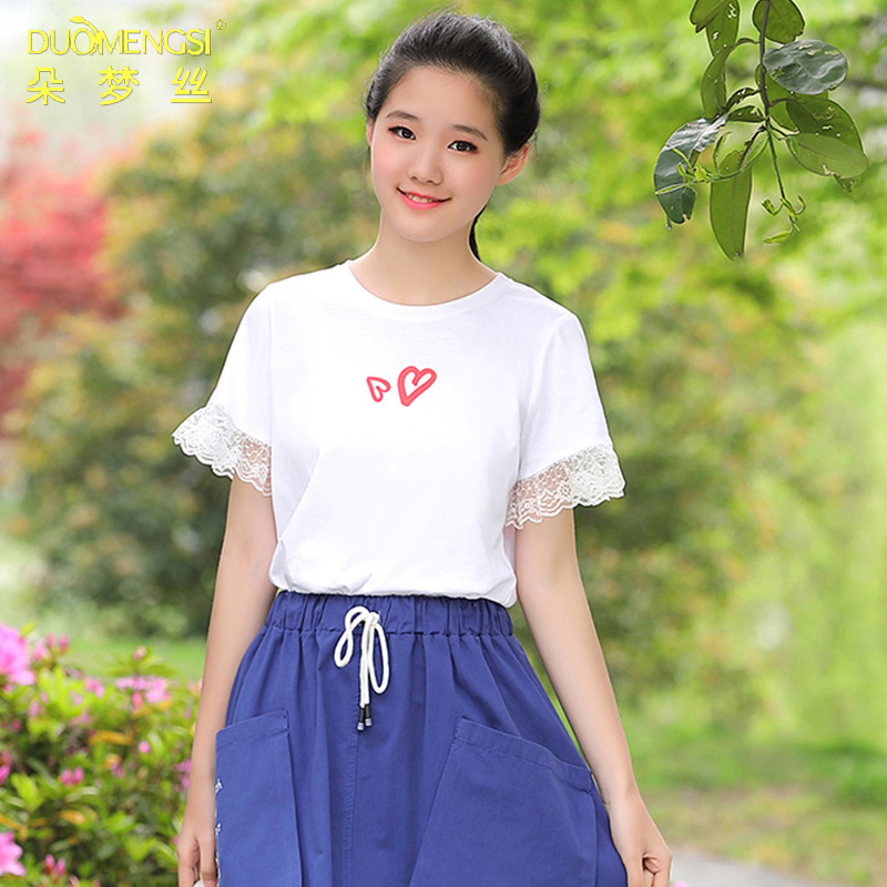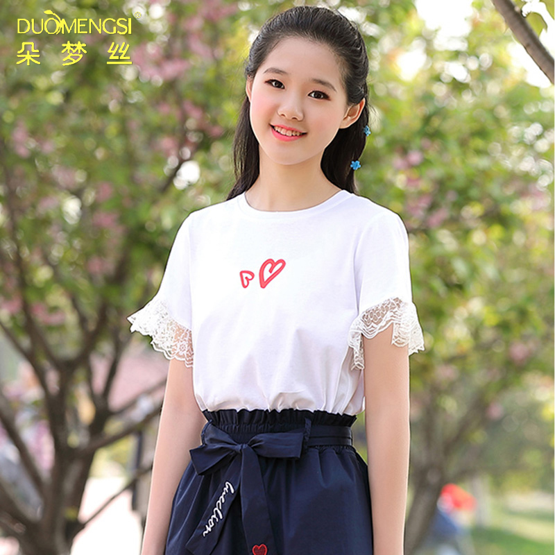 Junior high school students summer short-sleeved T-shirt girl cute shorts suit Korean version of the girl summer two-piece loose