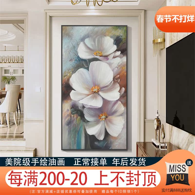 Large pink flower oil painting, door entrance decorative painting, pure hand-painted simple modern corridor corridor abstract hanging painting