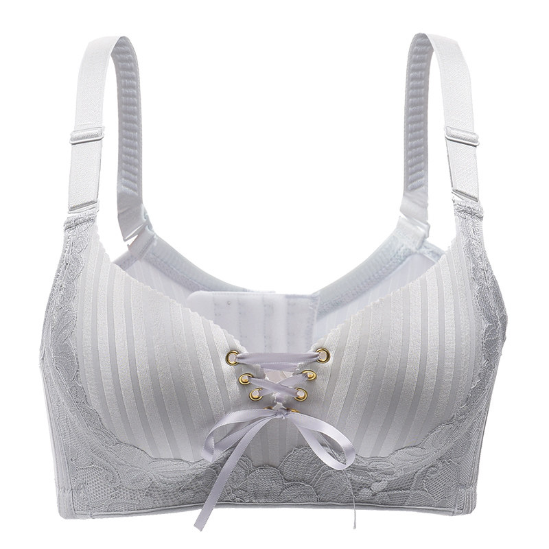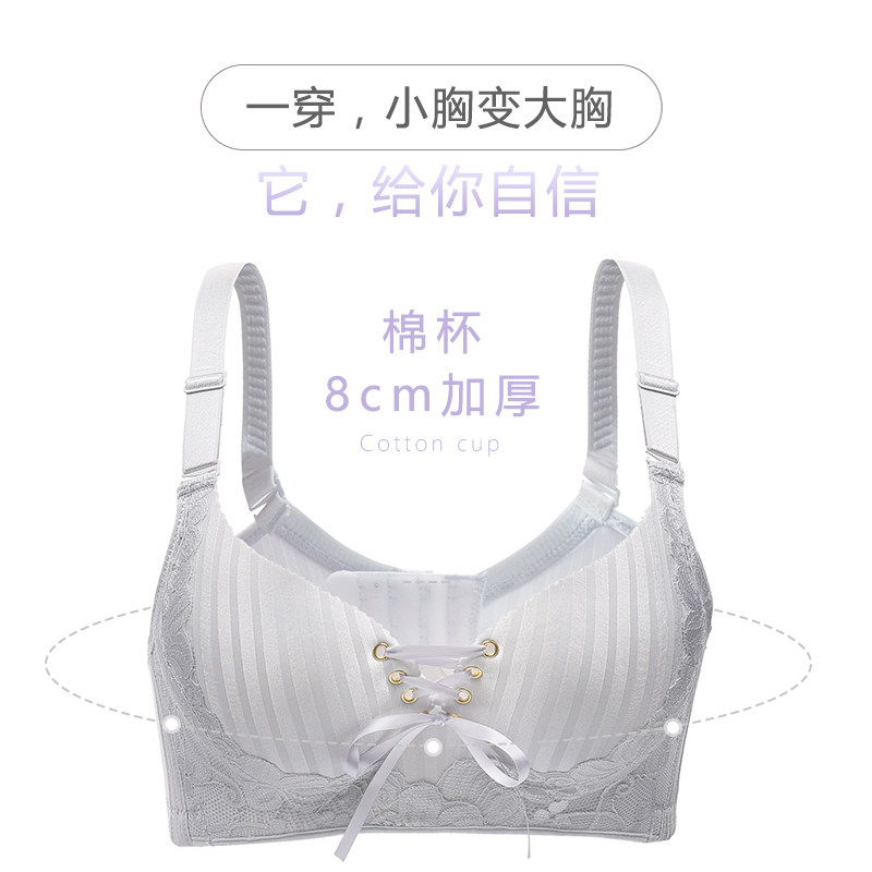 Thickened gathered bra without steel ring lb straps super thick 8cm sexy small flat chest AA cup pull B front lace underwear