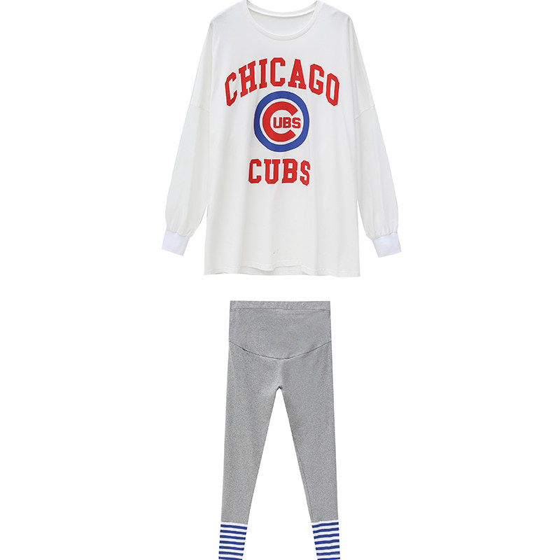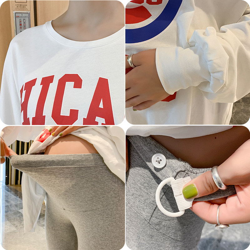 Gestational Maternity Fitted Pants Suit Spring Clothing 2022 Fashion Casual Loose Bat Cuff letter T-shirt Two sets in spring