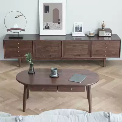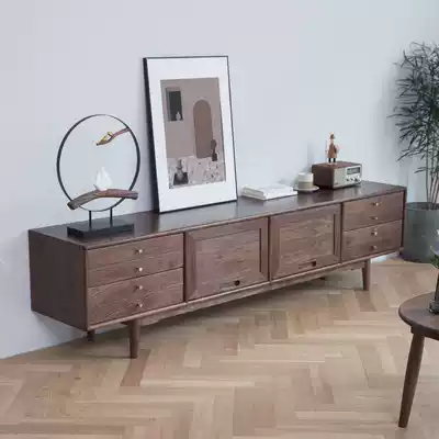 Nordic Japanese all solid wood TV cabinet modern simple black walnut cherry wood floor cabinet storage cabinet