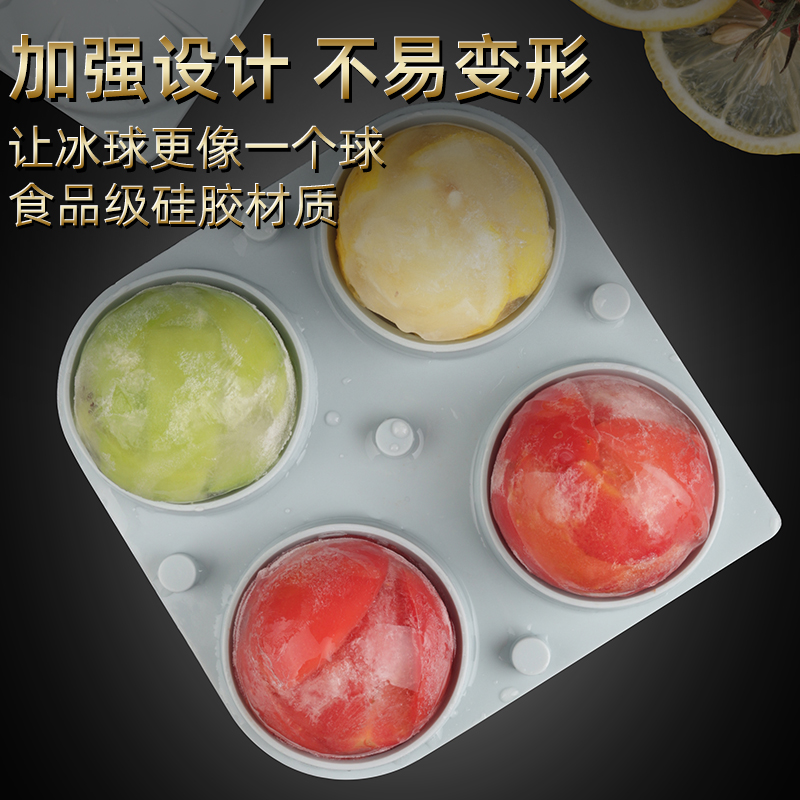 4 Even large number of ice hockey molds Home homemade whisky Divine Instrumental Round Silicone Ice Case Ice Cubes Ice Cubes Freezer