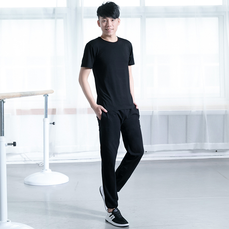 Men's round neck short sleeve set men's round neck long-sleeved suit men's crew neck short sleeves tops men's crew-neck long-sleeved top black lycra cotton trousers(unisex)black beauty back short sleeves Luo 蔔 pants Rose Red beautiful back short