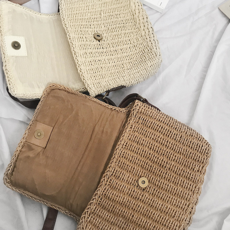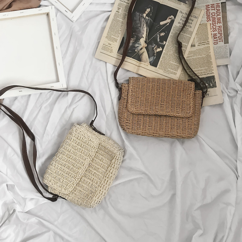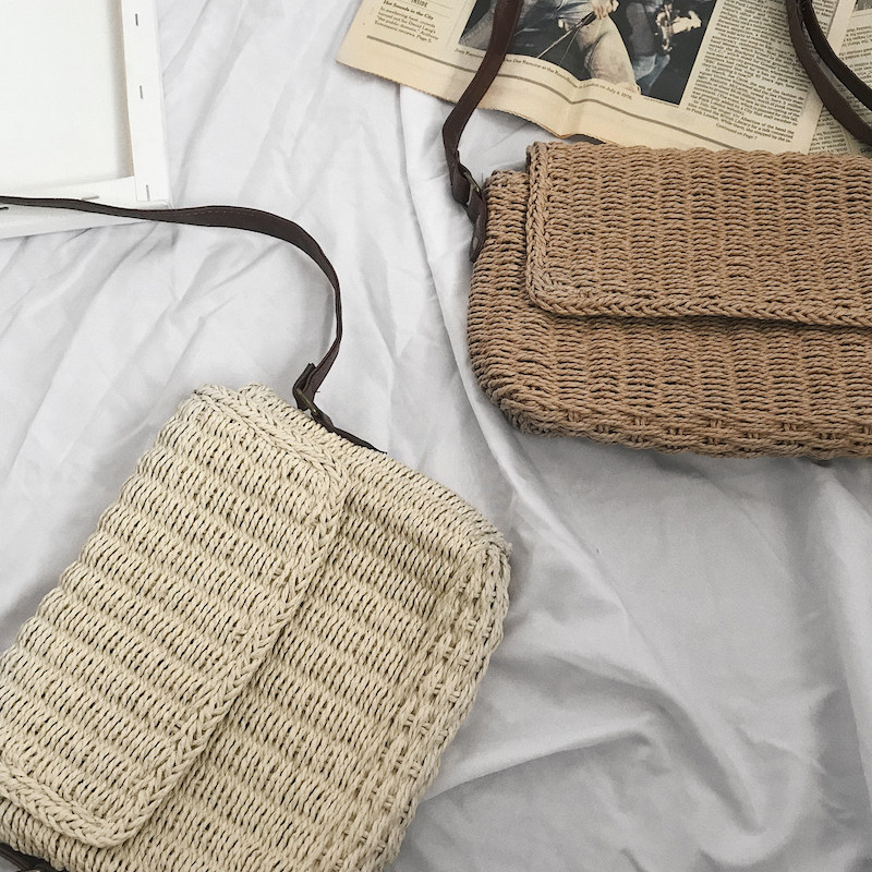 KAFKAsSHOP straw-woven small bag holiday satchel men and women with the same paragraph unisex simple street shooting Korean student handbag