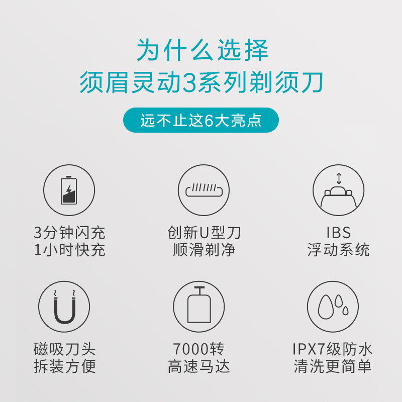 The beard - shaved duplicate razor S3 flexible three - knife electric charging man water wash the beard knife