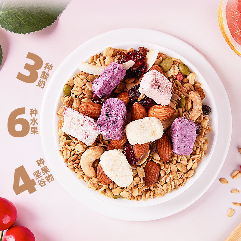 Non-fried nut fruit grain oatmeal 450g (fruit grain ≥ 5 0%) Non-fried yogurt nut oatmeal 450g (fruit grain ≥ 5 0%) Non-fried baked nut oatmeal 420g