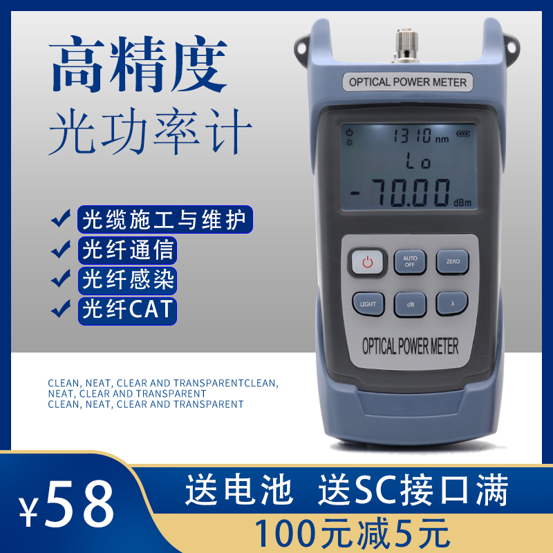 Optical Power Meter High-precision Optical Fiber Tester Optical Decay Test Send FC SC Optical Power Device, Timed Shutdown Charging Model Optical Power Meter Send SC Interface Brand New with Backlight 7 Wavelengths
