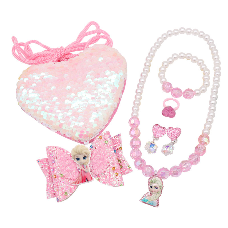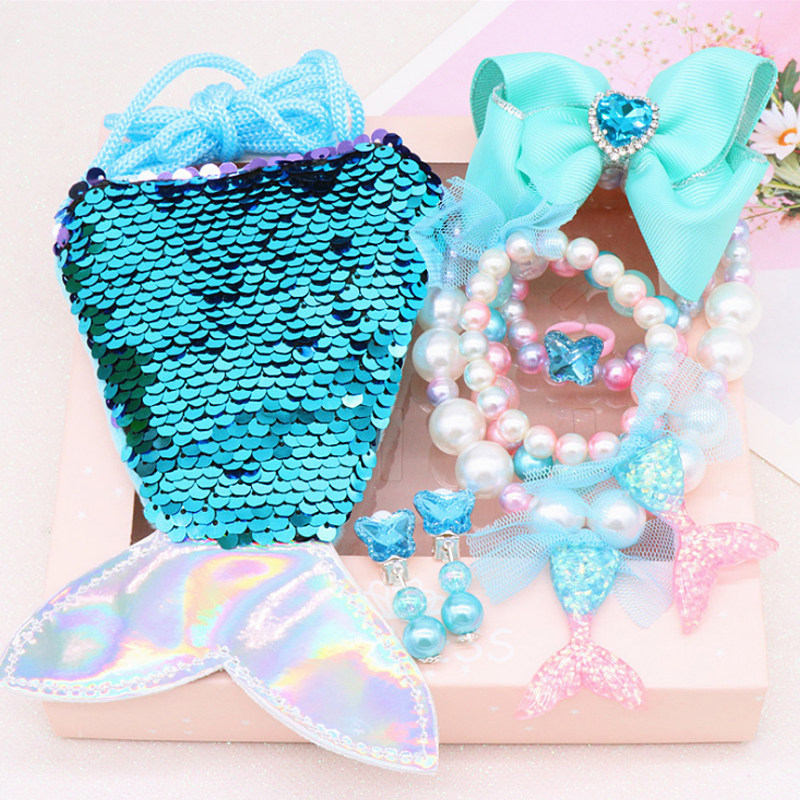 Frozen Princess Children's jewelry Fishtail coin purse Necklace Bracelet Set Hairpin Earrings Ring Accessories