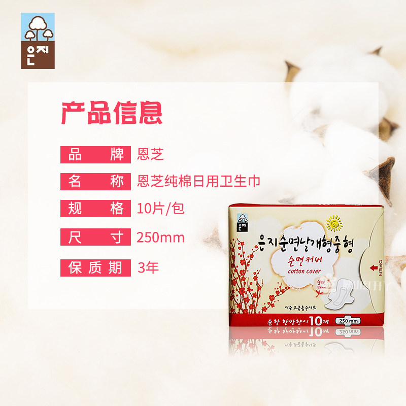 South Korea imported Enzhi pure cotton daily sanitary napkin 10 pieces 250mm no fluorescent agent dry, breathable and not leaking