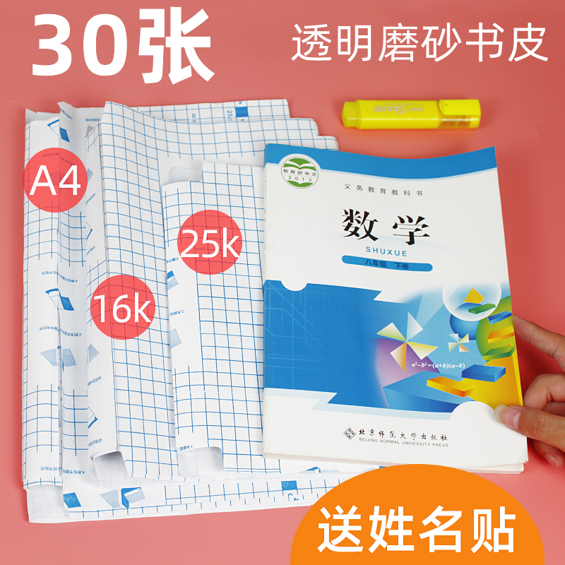 30 sheets of book leather book cover transparent suit a4 self-adhesive book leather paper frosted waterproof plastic 16K book film protective sleeve 25K elementary school students a sophomore year with a full set of self-adhesive wrapping book film book cover