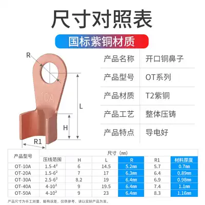 OT open copper terminal National standard copper wire lug wire pressure wire cold-pressed terminal copper connector 70pcs boxed