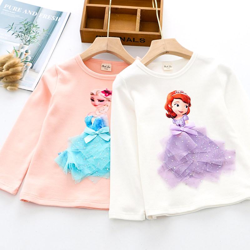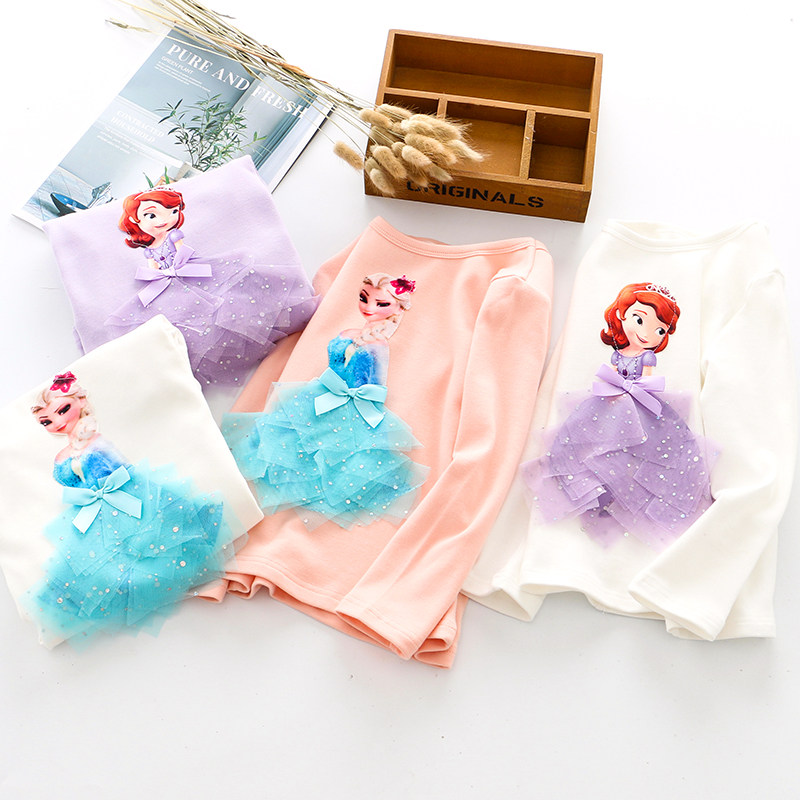 Girls' cotton elastic three-dimensional cartoon long-sleeved T-shirt Spring and autumn children's suits for babies and girls