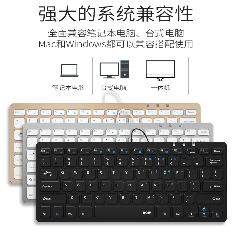 BOW Voyage Notebook Takeaway Wireless Keyboard Chocolate Usb Mini Cable Desktop Computer Mute Silent