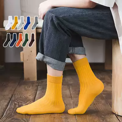 Socks men's middle tube stockings ins tide pure color cotton socks thin breathable men's socks deodorant Four Seasons socks men's stockings