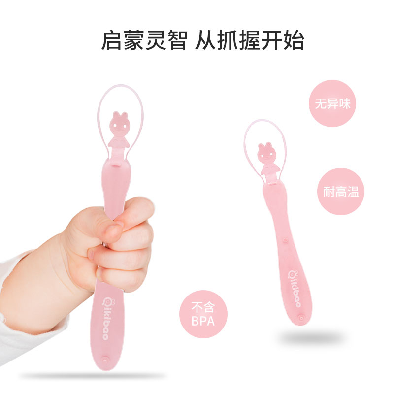 Qikibao baby spoon Baby silicone soft spoon Learn to eat training non-food spoon Newborn feeding water tableware set