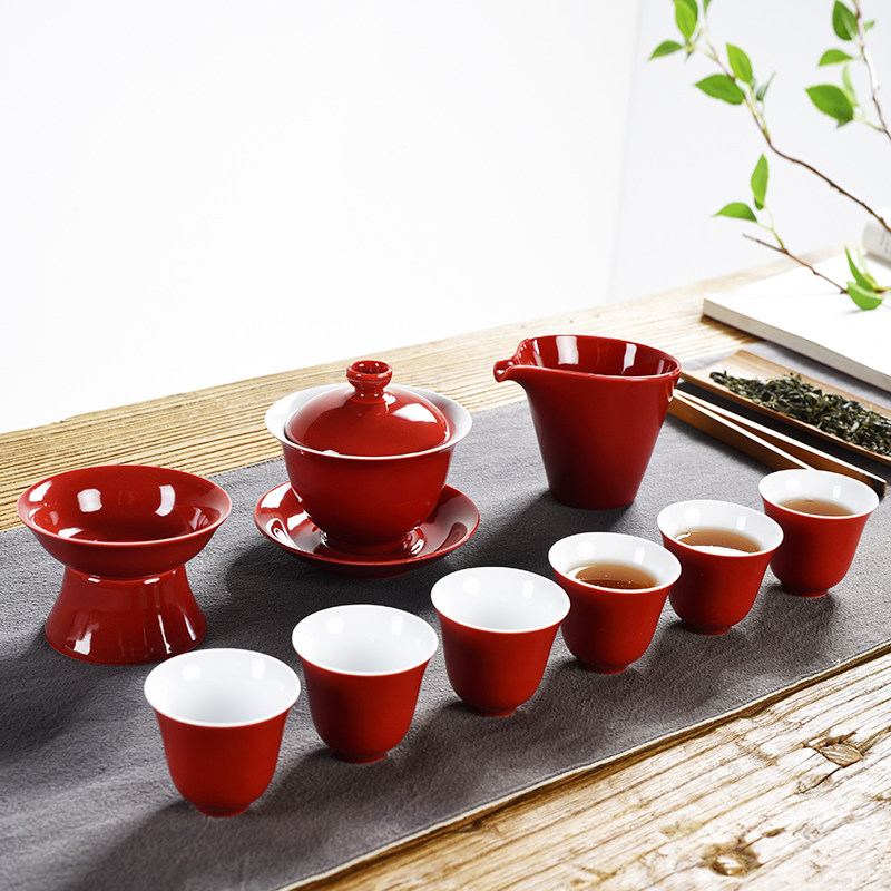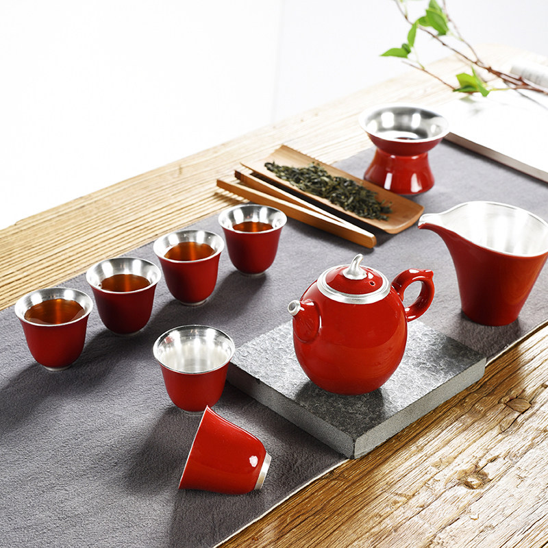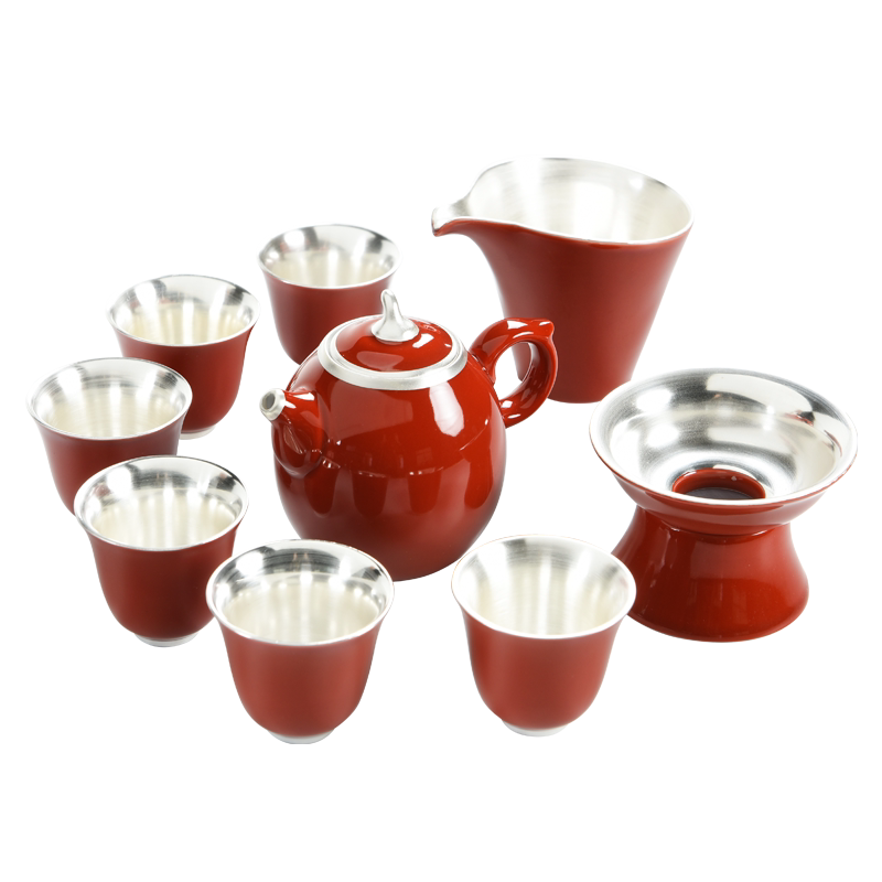 9 heads of Ji Red Gilded Silver (Tall Pot Cup) Tea Set Gift Box9 Heads Of Ji Red Gilded Silver (Low Pot Cup) Tea Set Gift Box 9 Heads of Ji Red (Lid Bowl High Cup) Tea Set Gift Box 9 Heads of Ji Red (High Pot Cup) Tea Set Gift Box