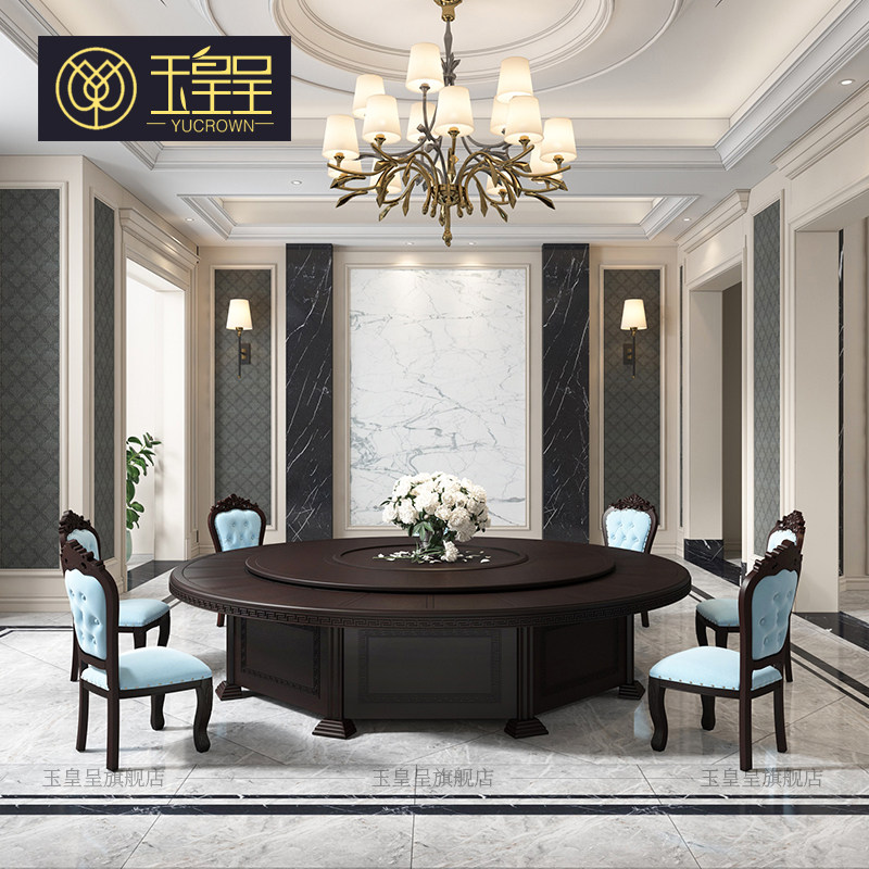 Jade emperor's star hotel dining room table electric big round table 20 people rotating turntable Chinese style hot pot table hotel club table