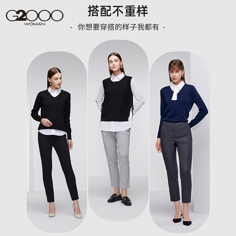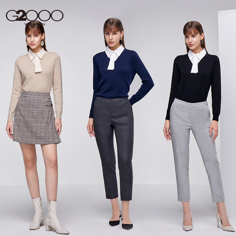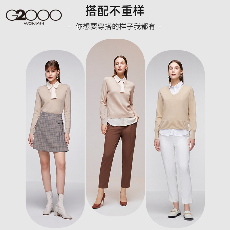 G2000 Women's Fall/Winter Casual Sweater Business OL Commuter Splicing Fake Two-Piece Knitted Backing Shirt