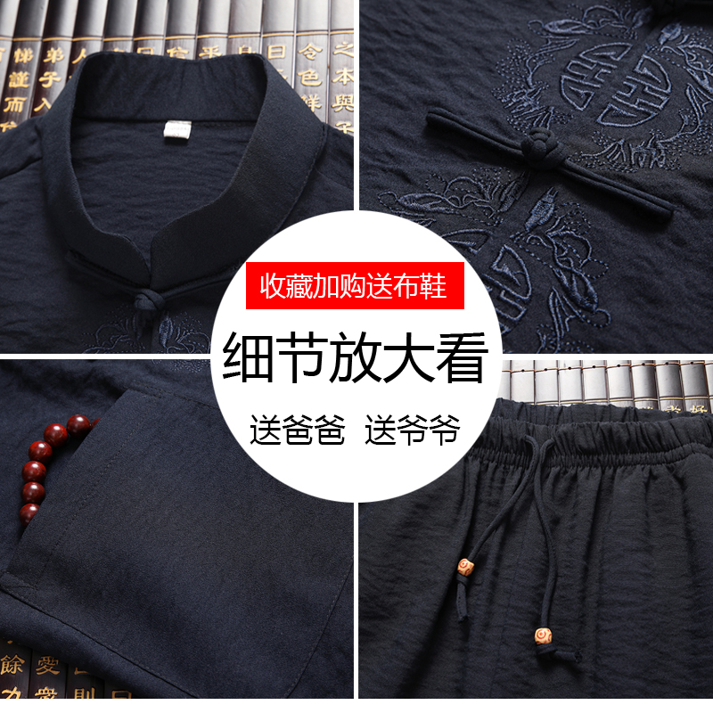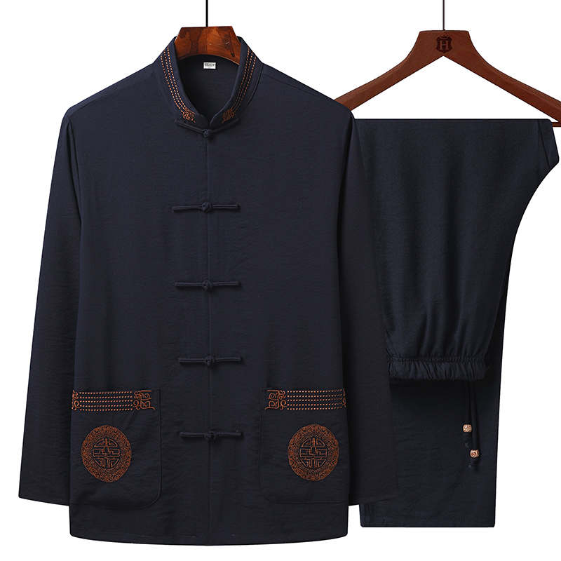 Tang suit men's spring and autumn middle-aged and elderly long-sleeved suits Chinese style cotton and linen embroidery father's clothes old man's grandpa Chinese clothes