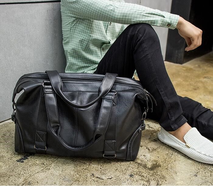 European and American leather travel bag men's handbag large capacity business travel fitness bag duffel bag one shoulder cross bag