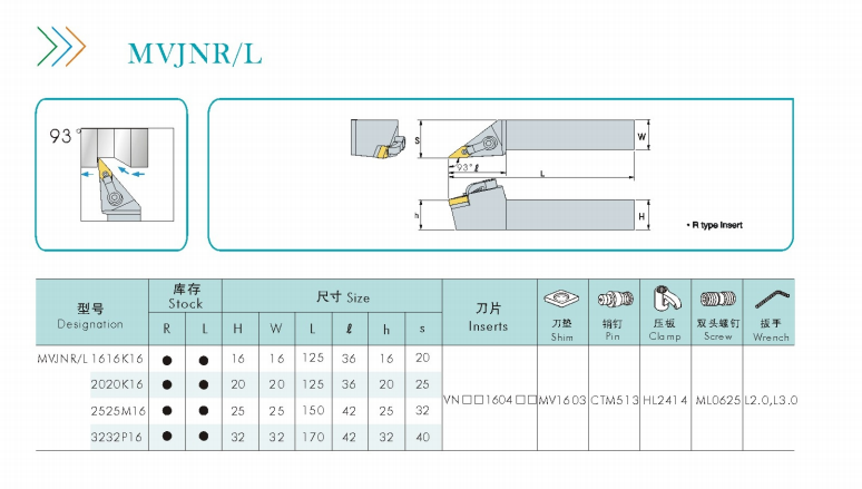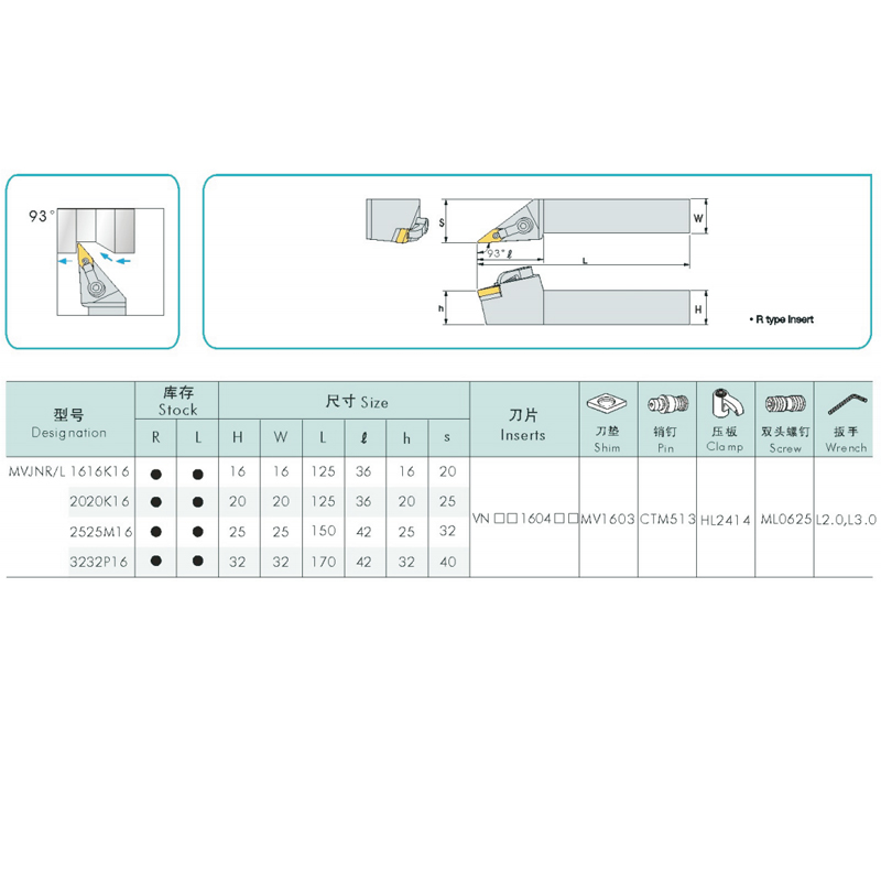 MVJNR1616K16 (positive knife) MVJNR2020K16 (positive knife) MVJNR2525M16 (positive knife) MVJNR3232P16